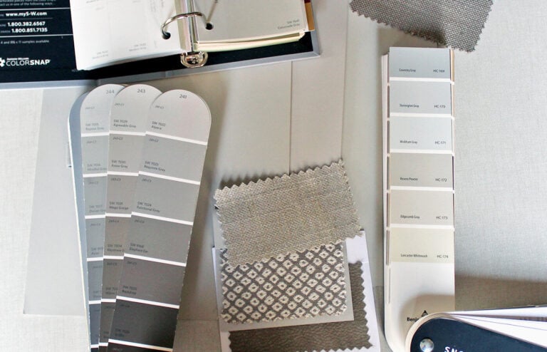Greige is a popular, neutral paint color for interiors and exteriors. This article highlights eight of the most popular Sherwin-Williams and Benjamin Moore greige paints. I narrowed this list to 4 Benjamin Moore paint colors and 4 Sherwin-Williams paint colors. In this article I share information about each color with swatches and examples in rooms. But first, what exactly is the color greige?
