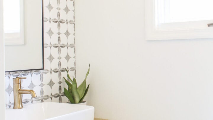 Peel and stick tile wallpaper is an affordable and attractive option. It will look like a traditional tile but is rental-friendly and easy to install.